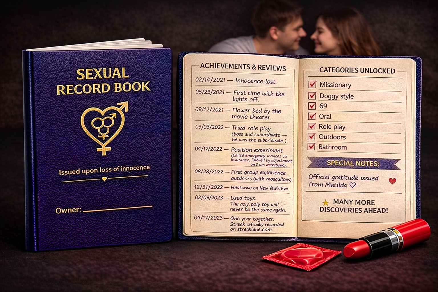 The Sex Record Book is the long-awaited document for people who believe their love life deserves official records, stamps, entries, and a touch of bureaucracy too.